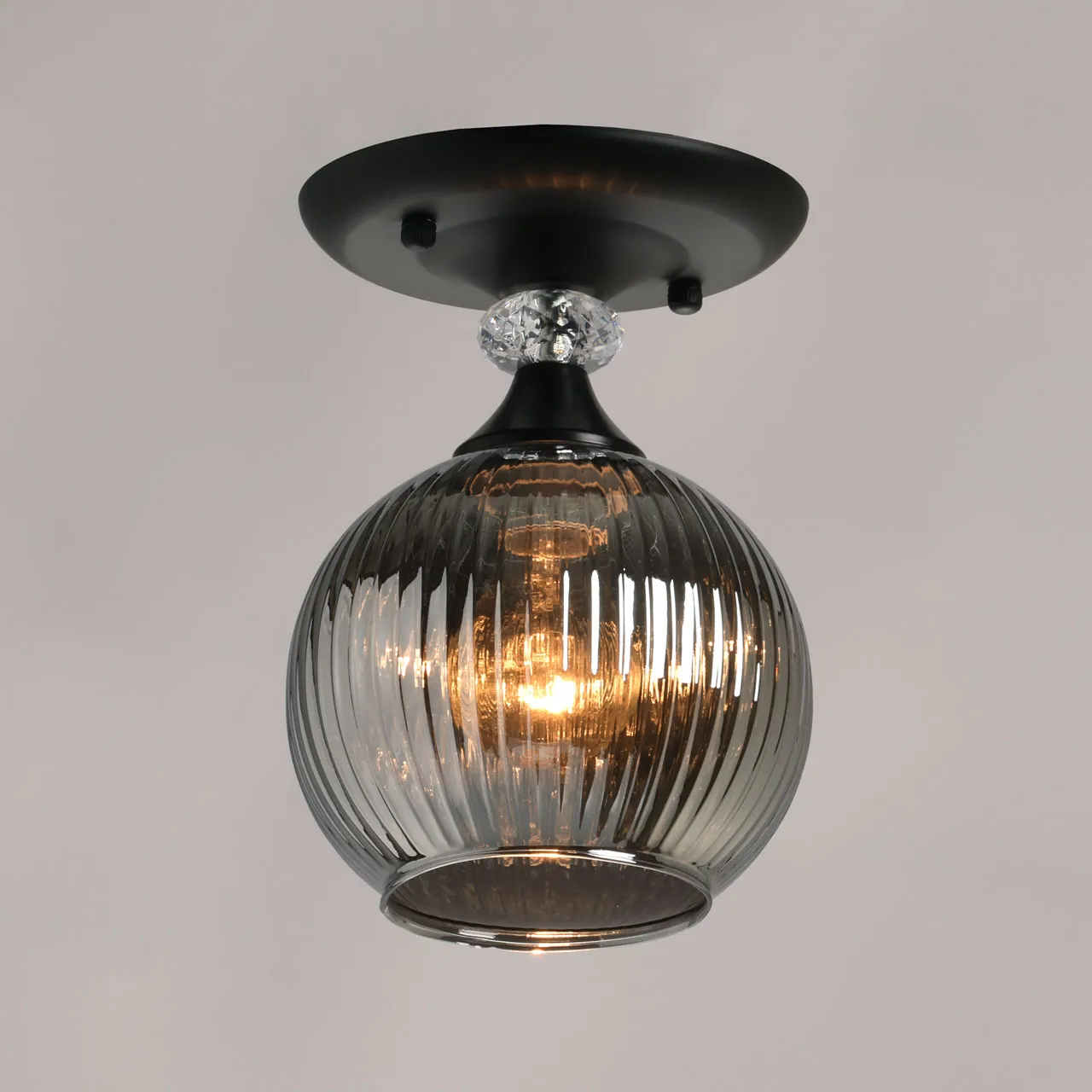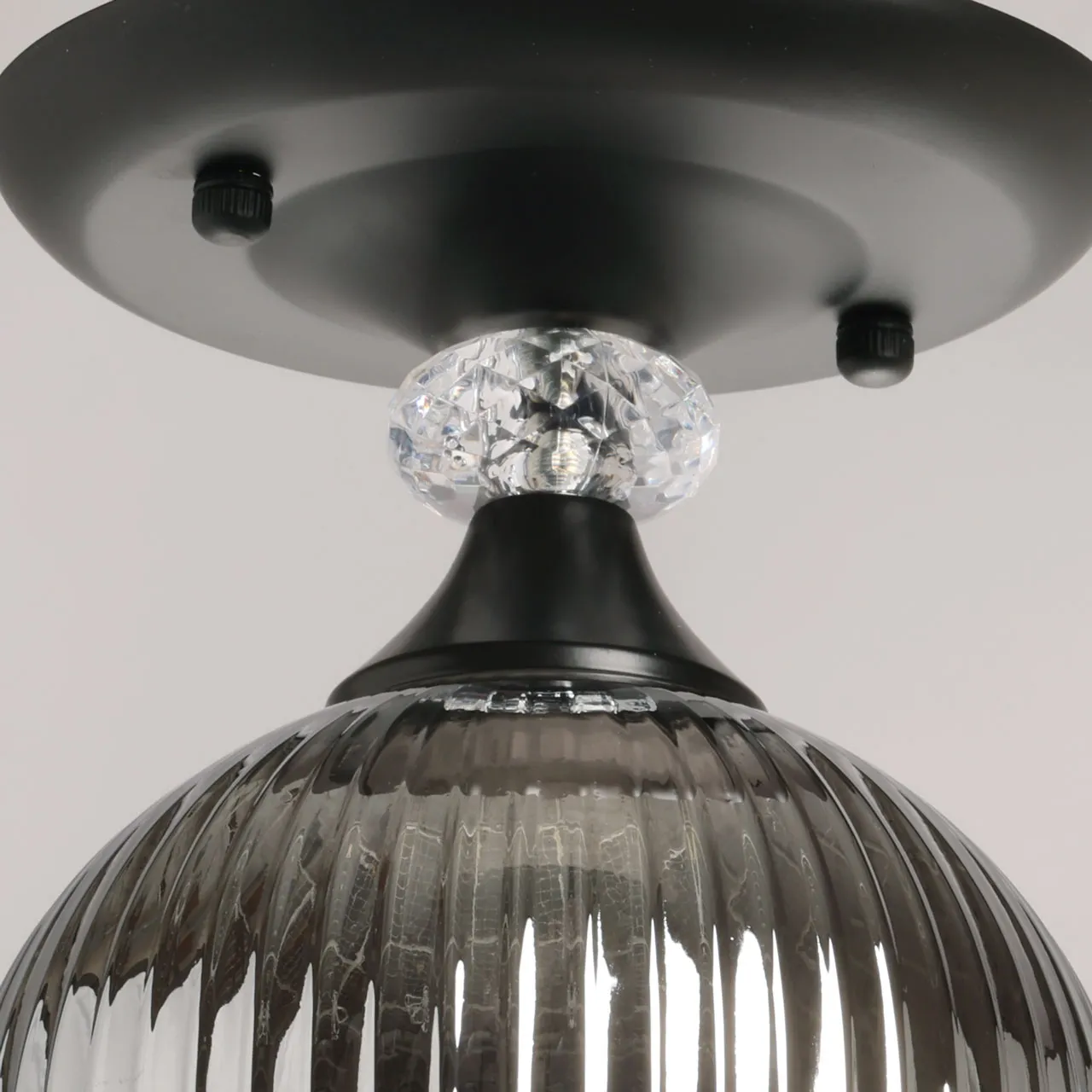 Основание/ металл/ черный Плафон/ стекло/ дымчатый Декор/ хрусталь/ прозрачный