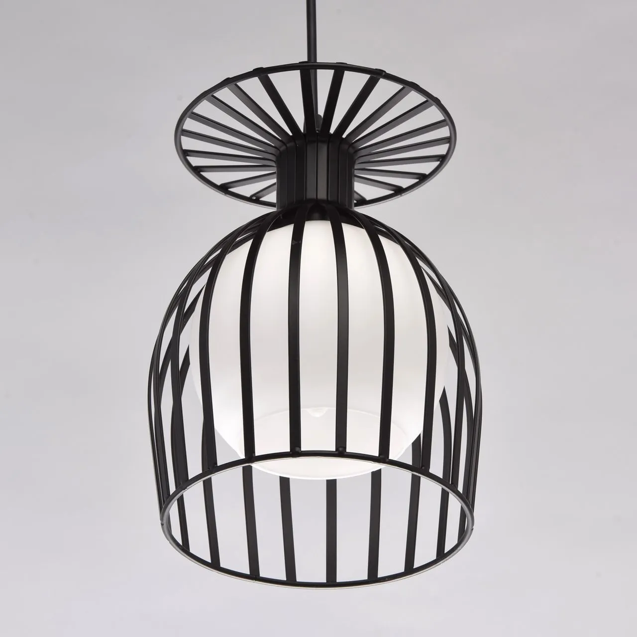 Металлическое основание черного цвета. Плафон: белое матовое стекло.