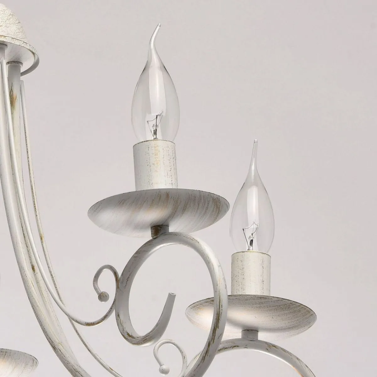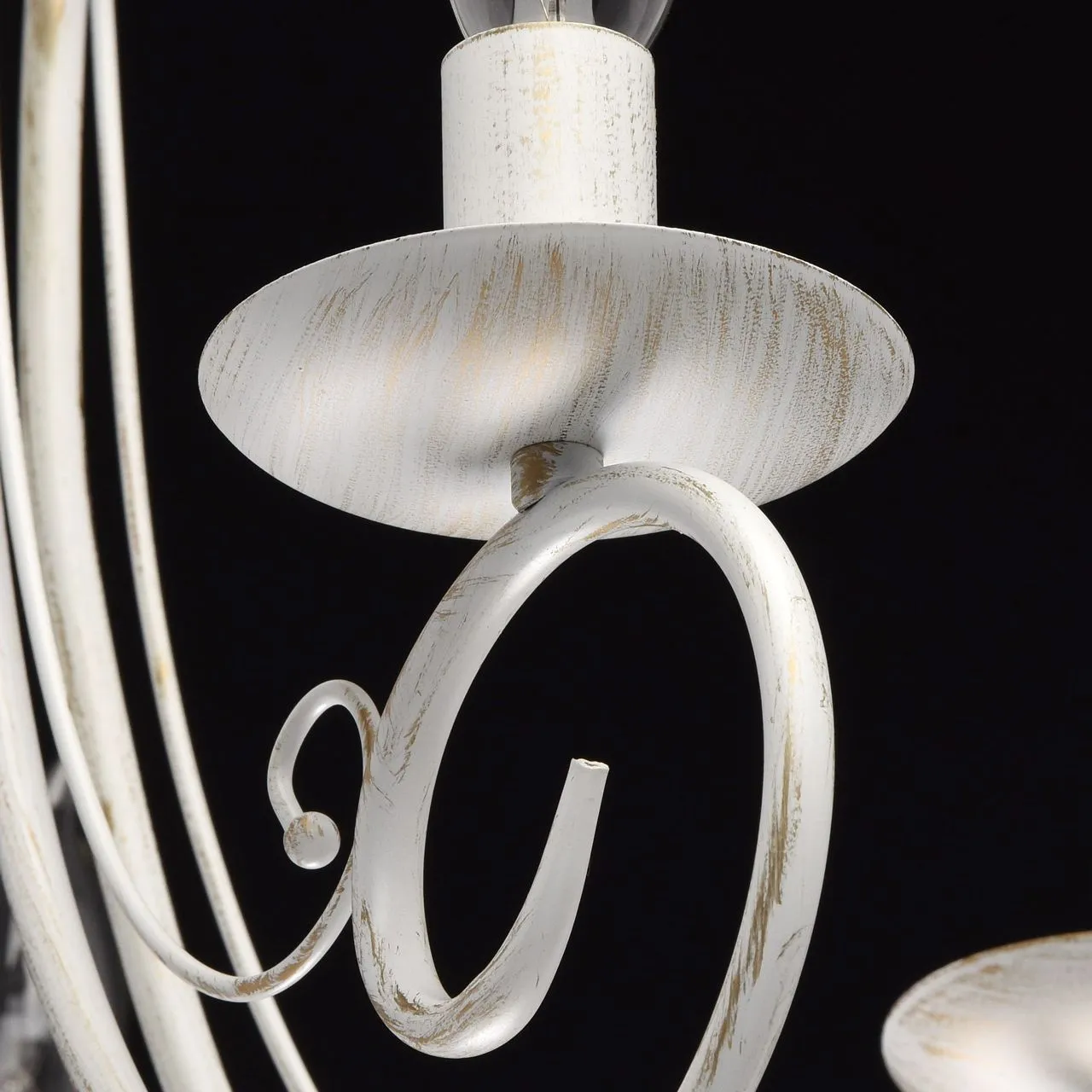 Металлическое основание матового белого цвета с золотистой патиной. Декор: металлические завитки бел