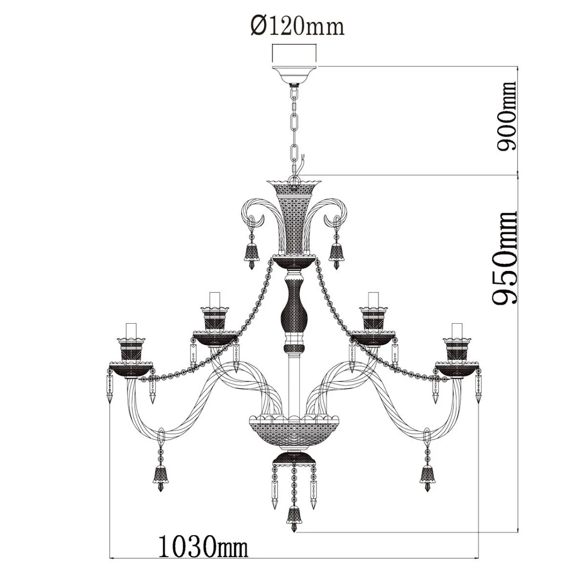 Металлическое основание цвета хрома, декоративные элементы из стекла и прозрачного хрусталя