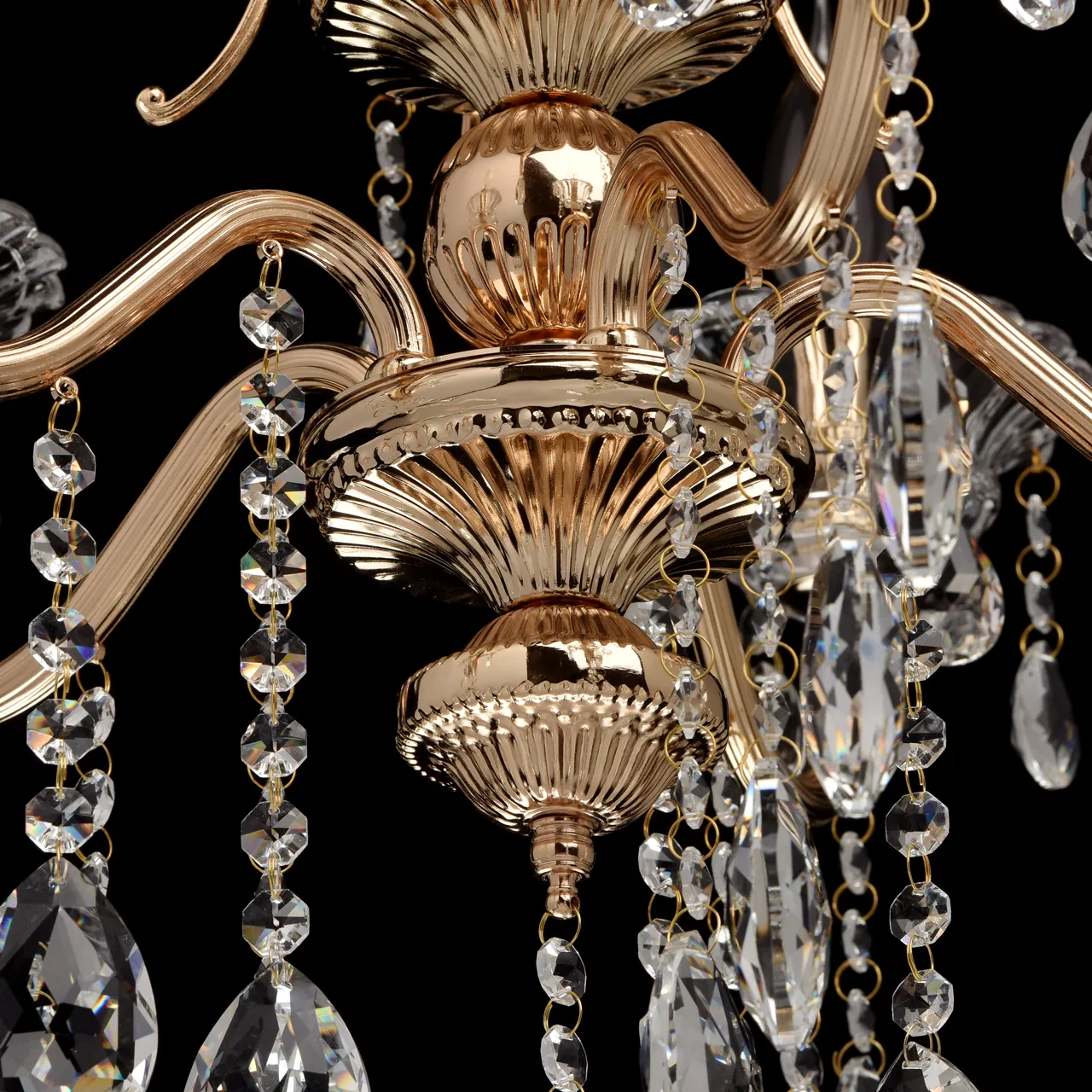 Металлическое основание цвета золото. Декор - хрусталь, декоративное стекло