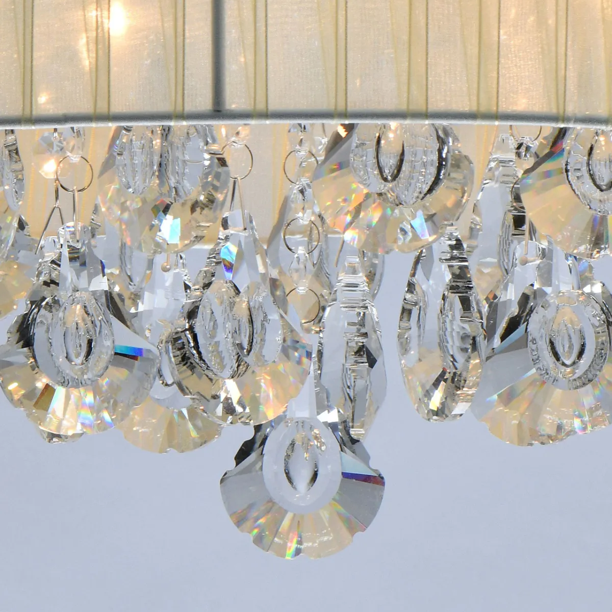 Основание/металл/хром Плафон/органза/бежевый Декор/хрусталь/прозрачный